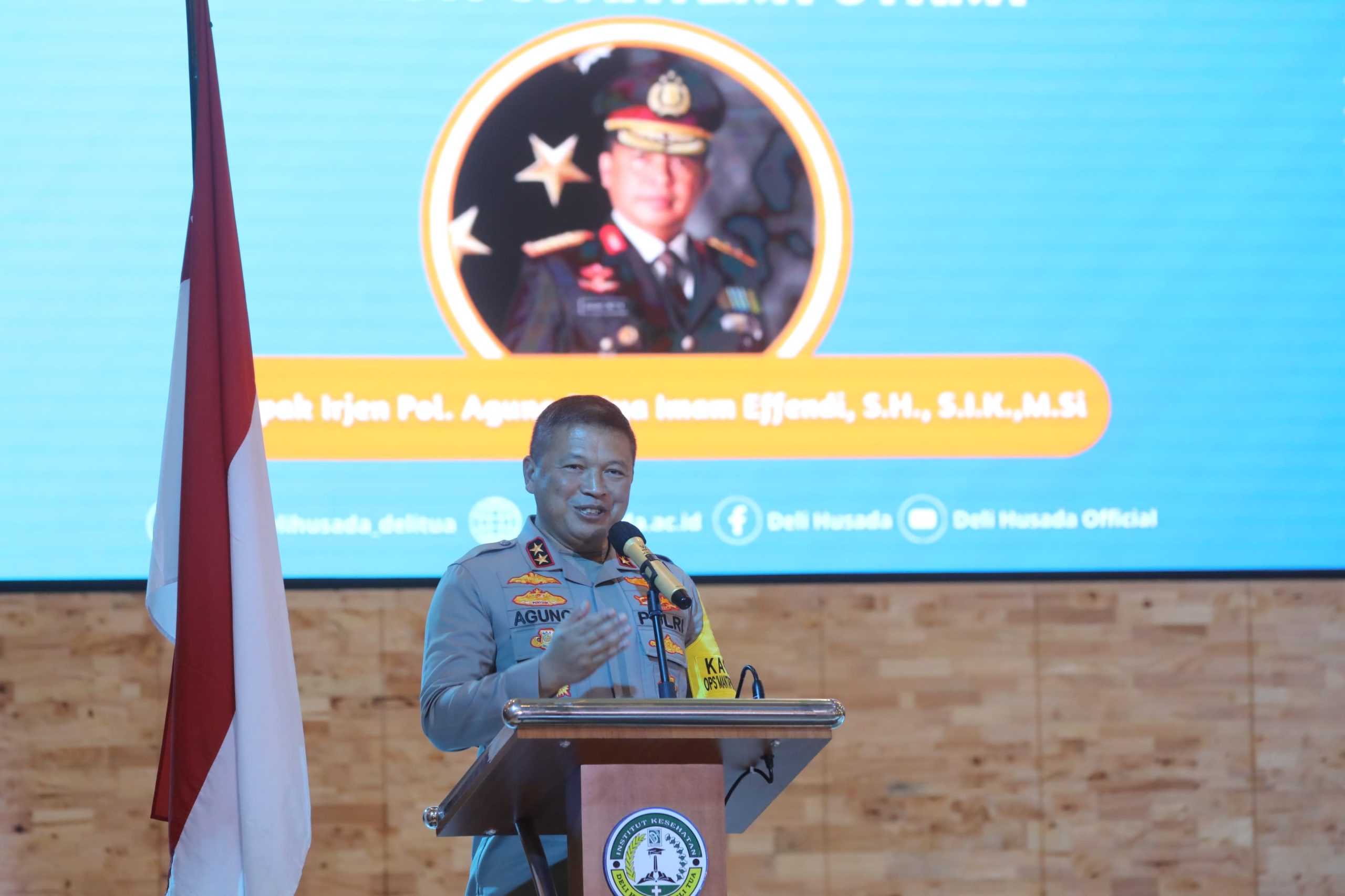 TARGETKASUSNEW.COM,MEDAN – Kapolda Sumut, Irjen Pol Agung Setya Imam Effendi, memberikan kuliah umum kebangsaan kepada ribuan mahasiswa Institut Kesehatan Deli Husada Delitua, Selasa (23/1).