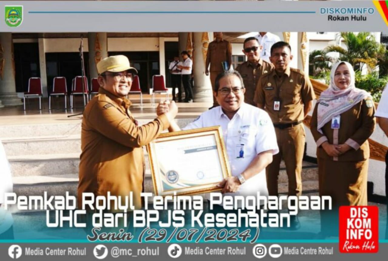 Sekda Rohul Muhammad Zaki mengatakan pemerintah Rokan Hulu akan menerima sertifikat UHC dari Deputi direksi BPJS kesehatan wilayah II pencapaian ini merupakan hasil dari upaya, kerja keras dan peran serta seluruh lapisan masyarakat yang telah mendukung program kesehatan di Kabupaten Rokan Hulu, dimana Saat ini pencapaian UHC di Kabupaten Rokan Hulu per Juli 2024 mencapai 97, 42 Persen dari total jumlah penduduk sebanyak 573.520 jiwa.