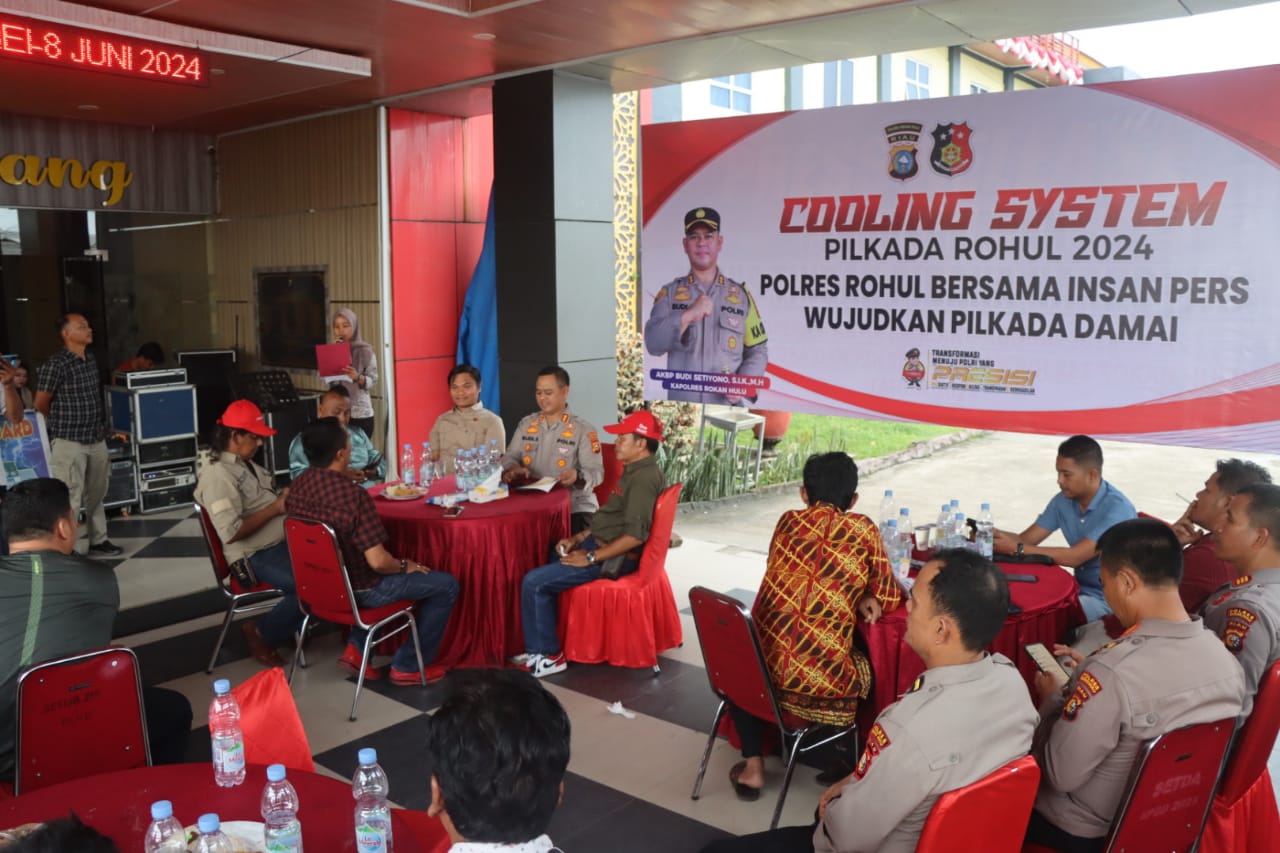 Dalam kesempatan itu, Kapolres Rohul AKBP Budi Setiyono SIK MH, Cooling System meningkatkan peran Insan Pers untuk meningkatkan situasi Kamtibmas yang sejuk, aman, damai dan kondusif dalam pelaksanaan Pilkada Tahun 2024.