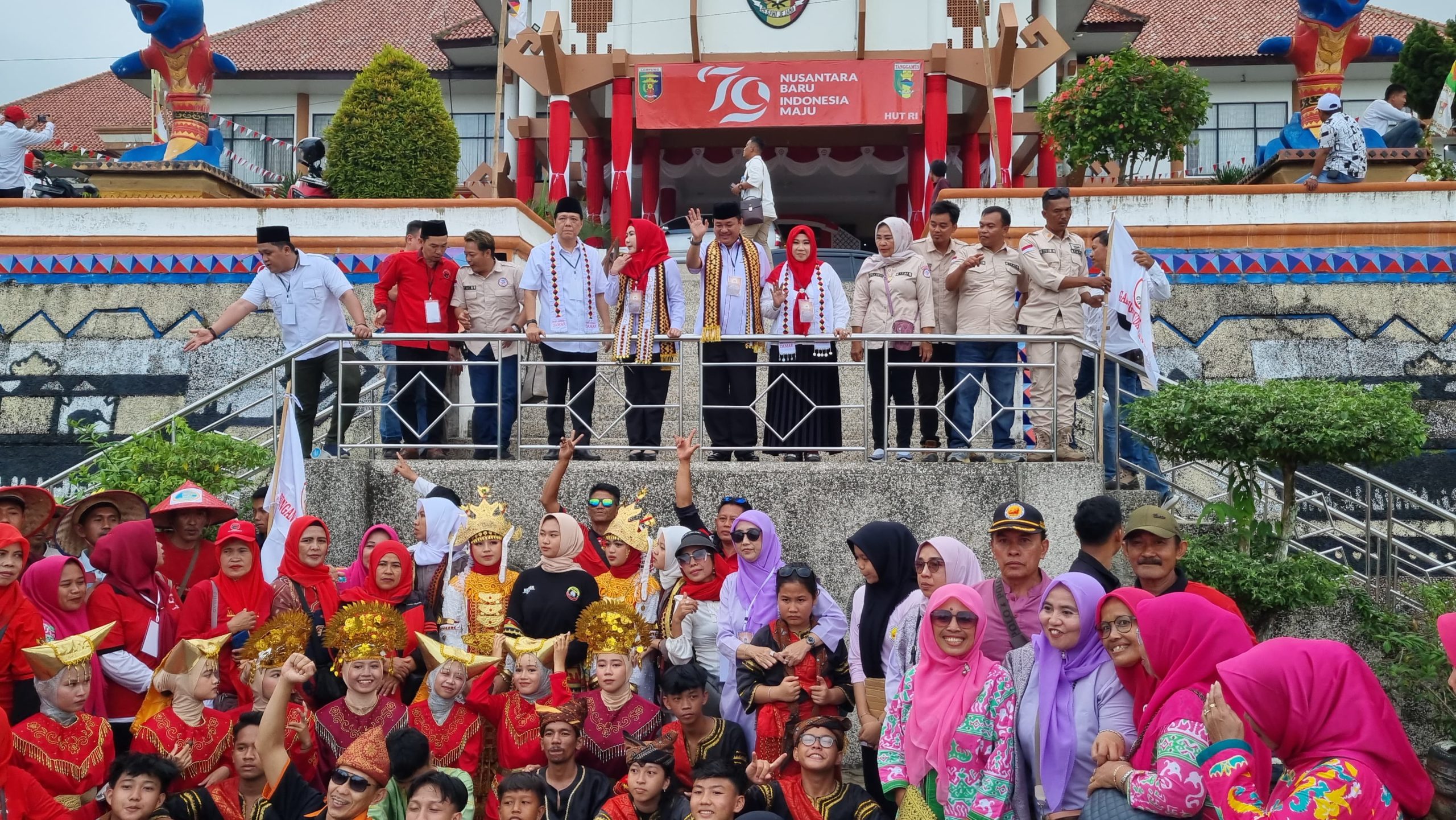 TKN94.COM,Usai deklarasi, DAMAR, dikawal oleh ribuan simpatisan, pendukung, partai pendukung, dan relawan ke KPU Tanggamus menggunakan mobil bak terbuka.