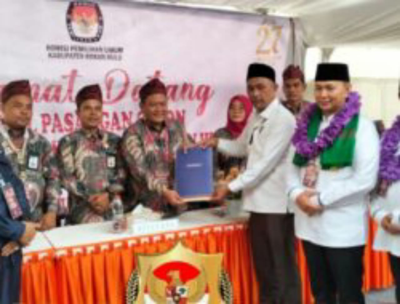 Kedatangan, Paslon H Indra Gunawan dan H Abdul Haris Lubis S Sos MSi, disambut Ketua KPUD Rohul Cepi Abdul Husein, di dampingi Komisioner, disaksikan Jajaran Komisioner Bawaslu Rohul.