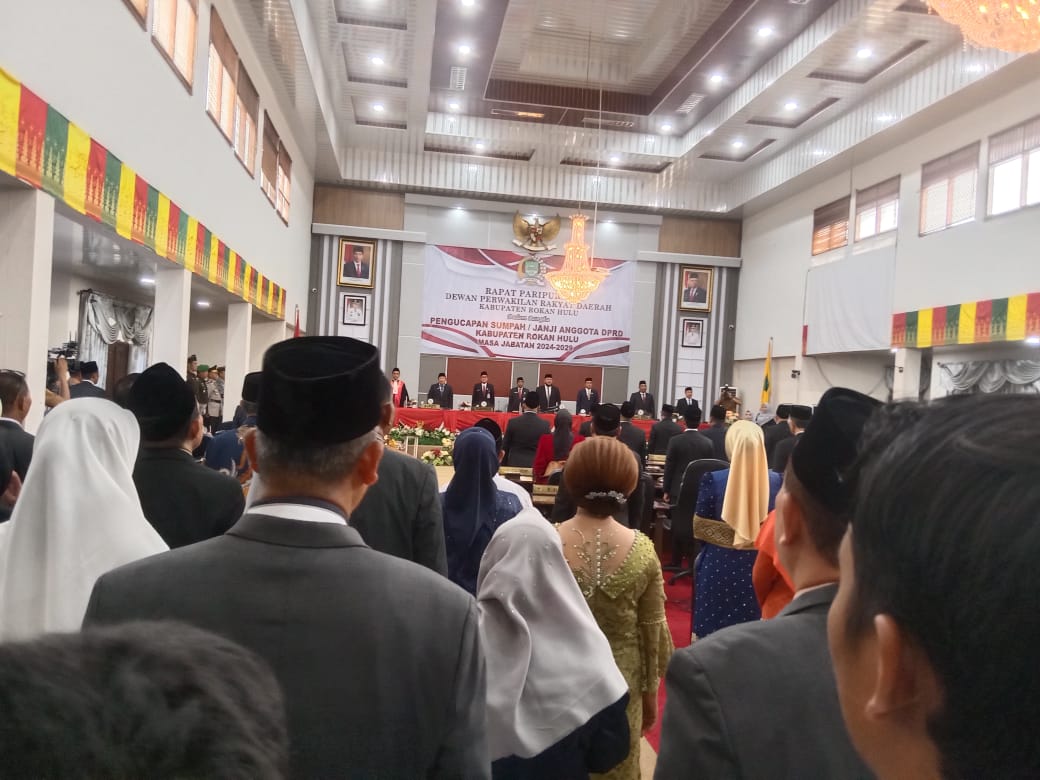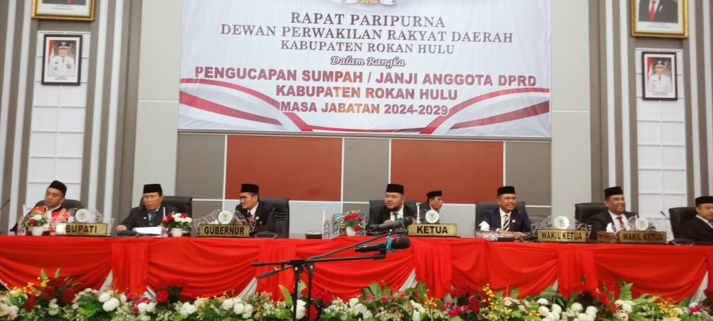 45 Anggota DPRD Rokan Hulu dilantik dan diambil sumpah jabatan nya olehKetua Pengadilan Negeri Rokan Hulu Rony Suata, S.H., M.H didampingi rohaniawan dihadiri Bupati Wakil Bupati Rokan Hulu H. Sukiman – H. Indra Gunawan, Perwakilan Gubernur Riau, pimpinan anggota DPRD sebelumnya yang habis masa jabatannya.