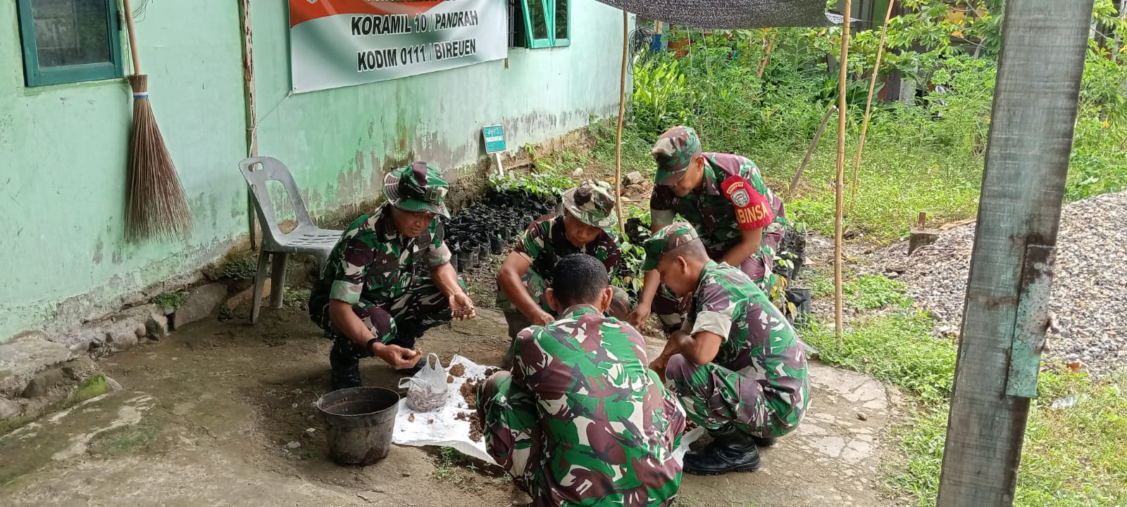 TKN94.COM,PANDRAH-Lettu Infantri Rusli koramil /10 Pandrah mengadakan kegiatan seed ball (bola bibit) dan korve. Pembuatan pembibitan tanaman keras jenis pohon mahoni, pohon asam jawa, dan lain-lain, Pandrah (3/9/2024) Jam 09:00 WIB.