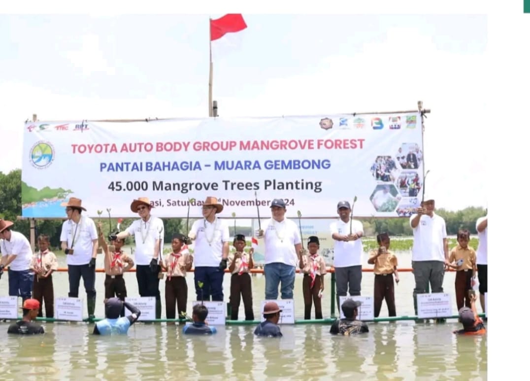 TKN94.COM Kab. Bekasi Di laksanakan langsung oleh Pj Bupati Bekasi, Dedy Supriyadi menyambut baik penanaman 45.000 pohon mangrove di pesisir Pantai Muaragembong yang diinisiasi PT. Sugity Creatives di Kp. Beting Desa Pantai Bahagia, Kecamatan Muaragembong, pada Sabtu, (2/11).