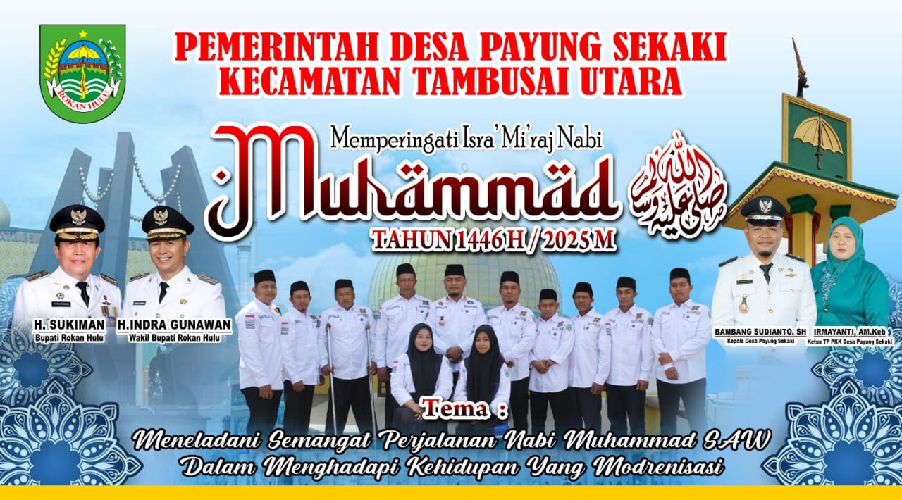 TKN94.COM,Rohul. Pemerintahan Desa payung sekaki beserta perangkat dan para pengurus masjid – pengurus mushola setempat , mengadakan isra” mi’raj 1446 H , di lingkungan pemerintahan desa Payung Sekaki Tambusai Utara Rokan Hulu Riau , pada Senin (27/1/2025 ) .
