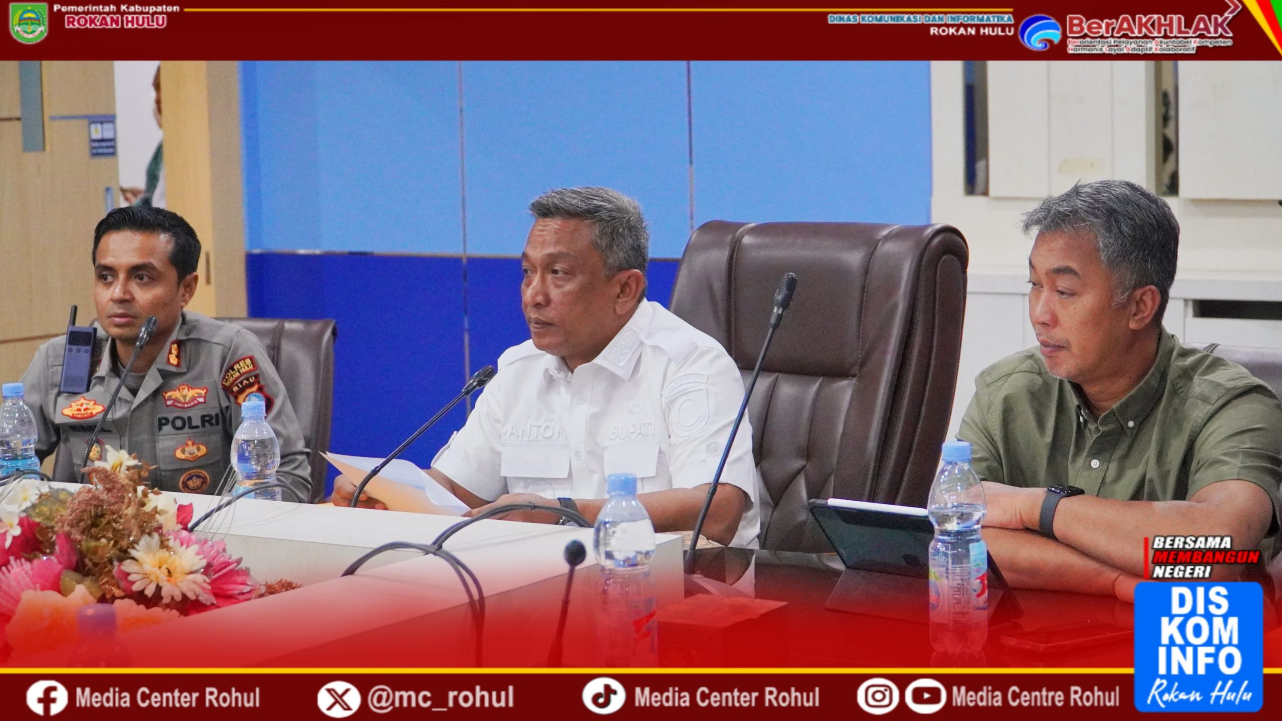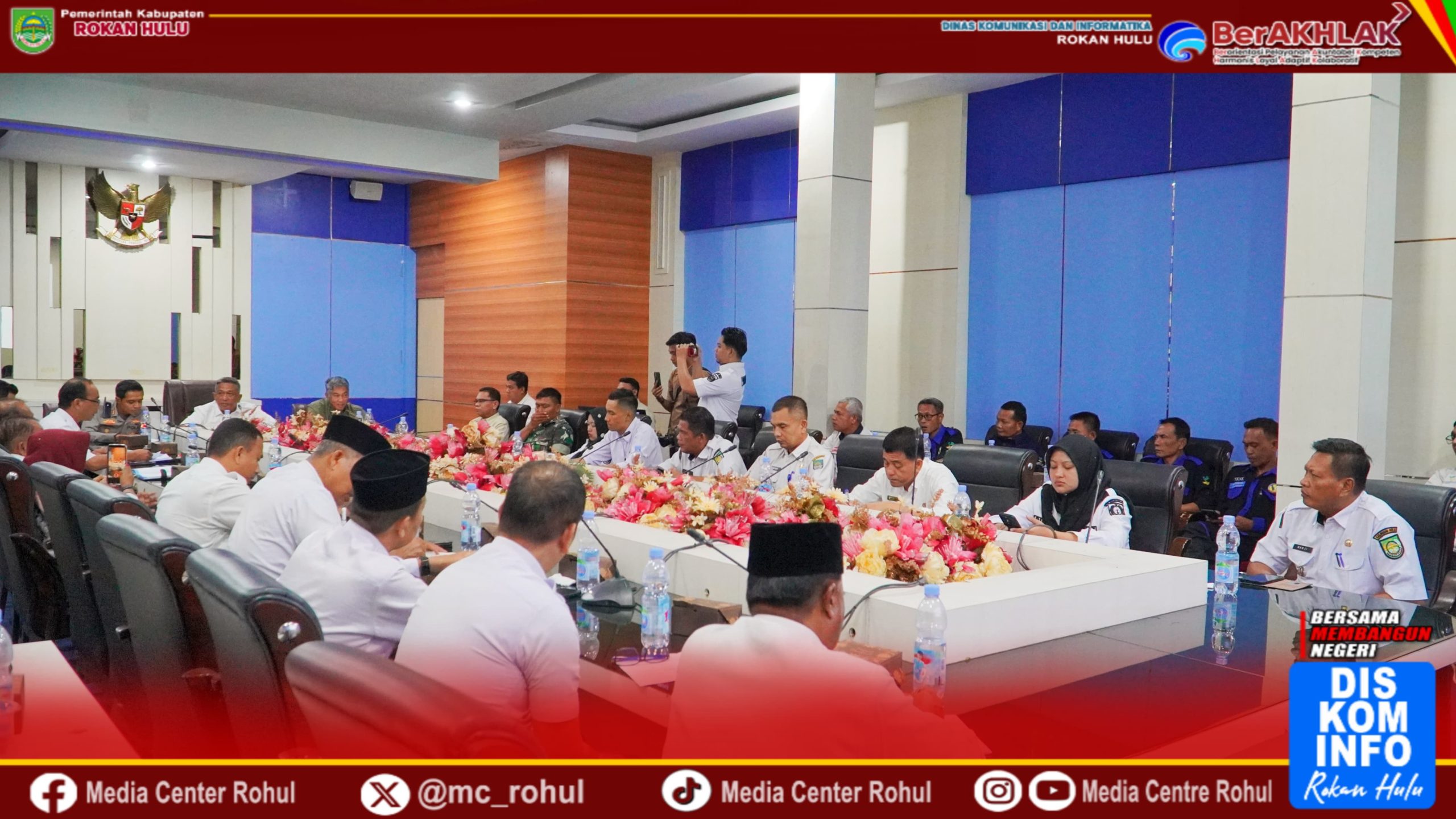 Turut hadir dalam rapat Kapolres Rohul AKBP Emil Eka Putra, S.IK, SH, MH, perwakilan Unsur Forkopimda, Pimpinan perum Bulog Kantor Cabang Kampar Eko Nugroho, Kepala OPD, camat, tlTenaga Kesejahteraan Sosial Kecamatan (TKSK) dari 16 Kecamatan se-Rokan Hulu