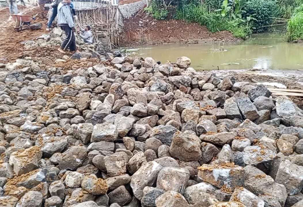 Menurutnya, pasangan batu talud yang masih baru tersebut akhirnya mengalami patahan dengan ukuran sekitar 1 x 1,5 meter. Ia menegaskan, kerusakan itu bukan terjadi setelah jembatan difungsikan, melainkan saat proyek masih dalam tahap pengerjaan sehingga menjadi tanggung jawab penuh pihak pelaksana.