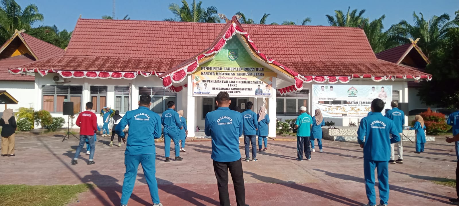 TKN94.com,Tambusai Utara . Camat Tambusai Utara Sunarji,S.Pd bersama seluruh staf kantor camat adakan kegiatan pagi Senam bersama , ini merupakan salah satu cabang olahraga yang bertujuan untuk meningkatkan kebugaran jasmani dan rohani, dengan melatih tubuh untuk melakukan gerakan-gerakan tertentu secara teratur dan juga sistematis.