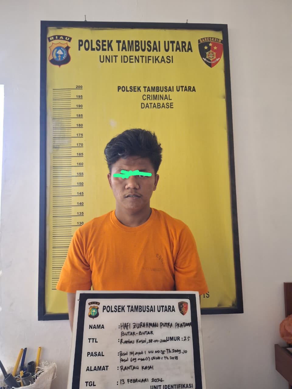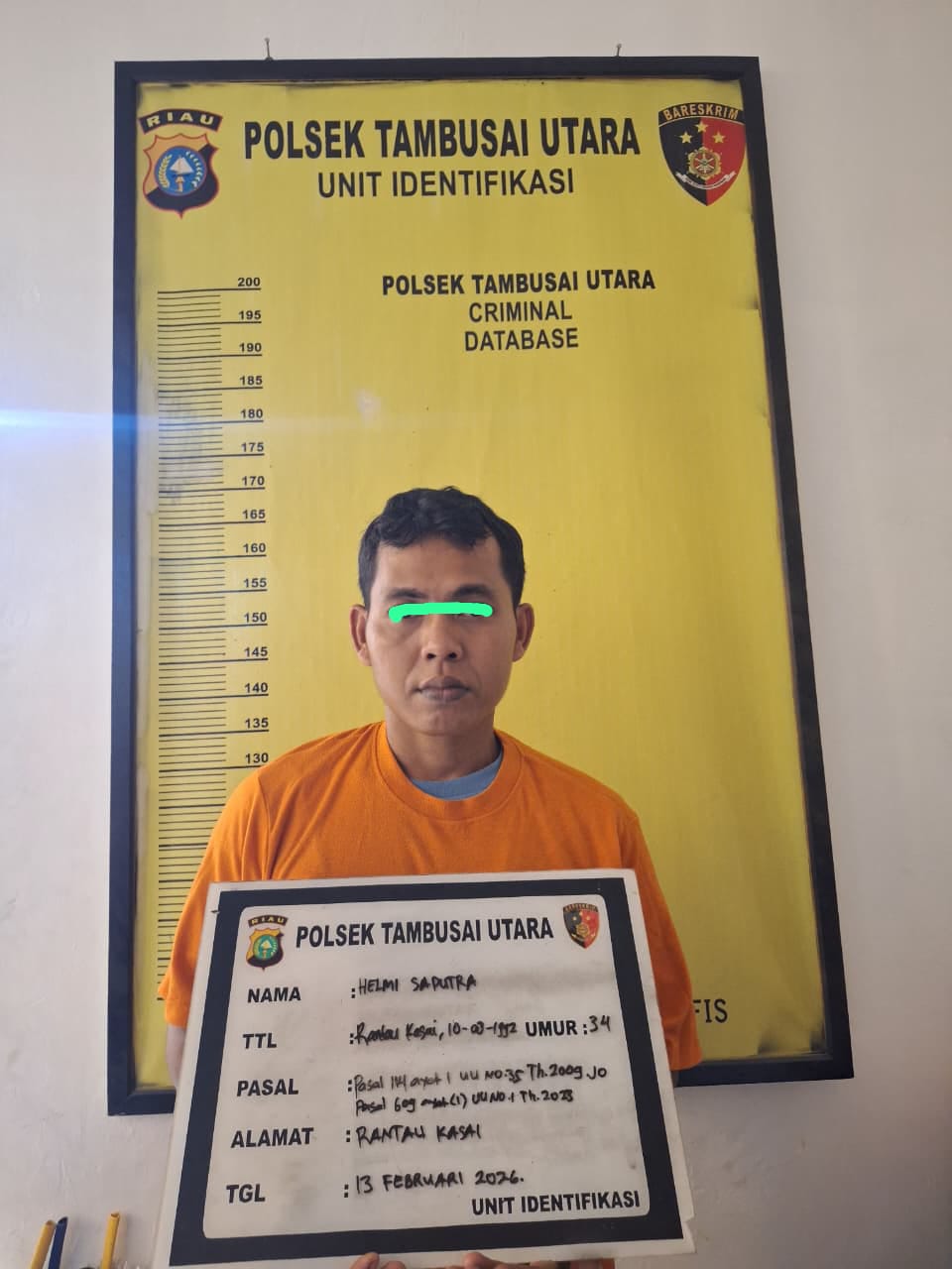 Kanit Reskrim Polsek Tambusai Utara IPDA Rahmat bersama anggota , tidak menunggu waktu lama , dengan gerak cepat langsung memimpin penangkapan terhadap saudara HELMI hingga pada hari jumat tanggal 13 Februari 2026, sekira pukul 15.00 Wib HELMI berhasil diamankan dibelakang rumah nya dan ianya mengakui bahwa narkotika sabu yang ditemukan pada penguasaan APIS adalah milik nya, yang diserahkan nya pada hari kamis tanggal 12 Februari 2026, sekira pukul 17.00 Wib sebanyak 1 kantong dan terhadap sabu tersebut sudah ada yang terjual dan uang penjualan nya juga sudah di transferkan oleh APIS kepada HELMI sebanyak Rp.1.500.000 ke rekening BRI a.n. HELMI SAPUTRA, berdasarkan ketarangan tersebut tersangka dan barang bukti dibawa ke Polsek Tambusai Utara guna proses hukum lebih lanjut ,” pungkas Kapolsek.AKP.Heri.