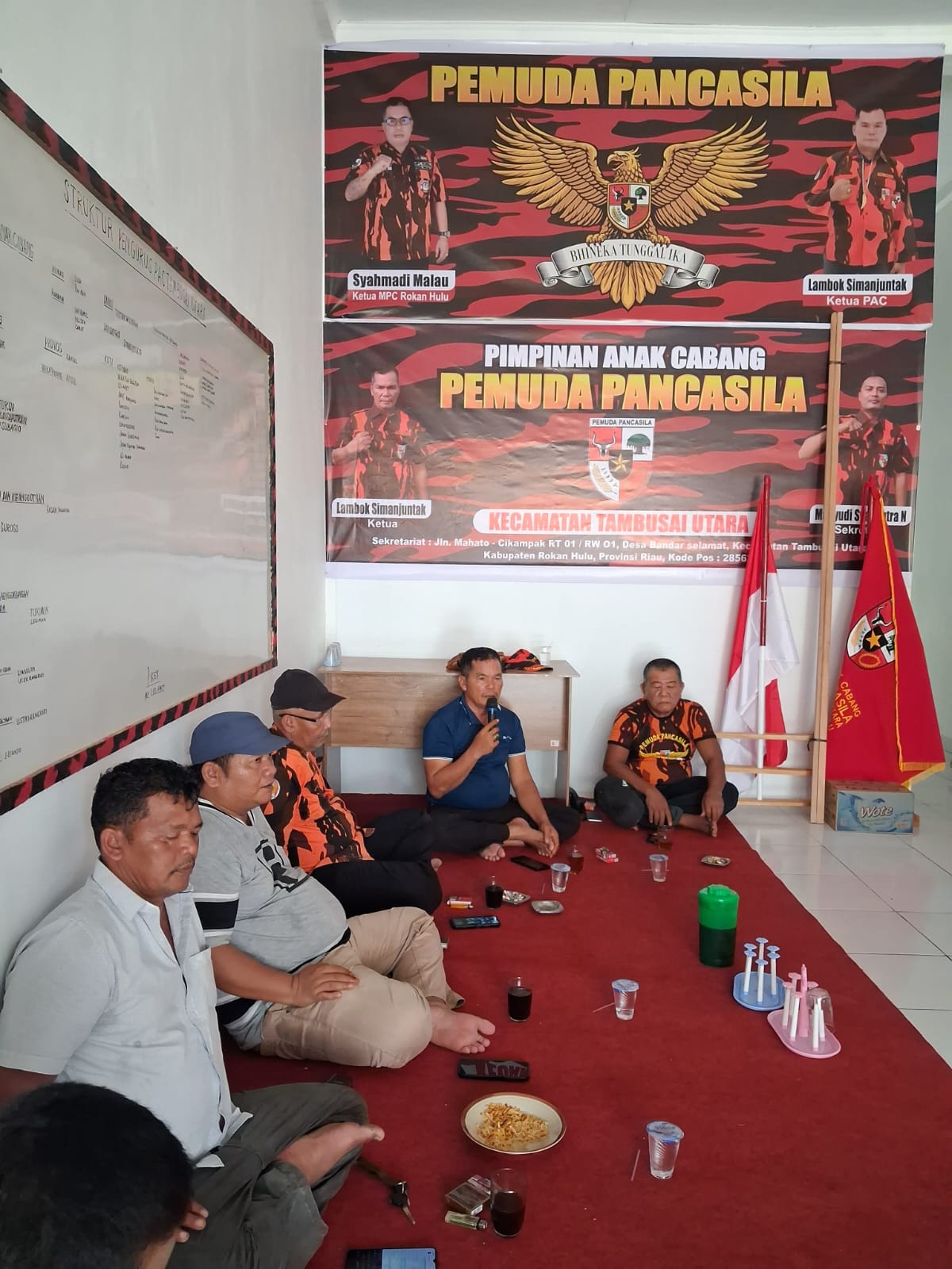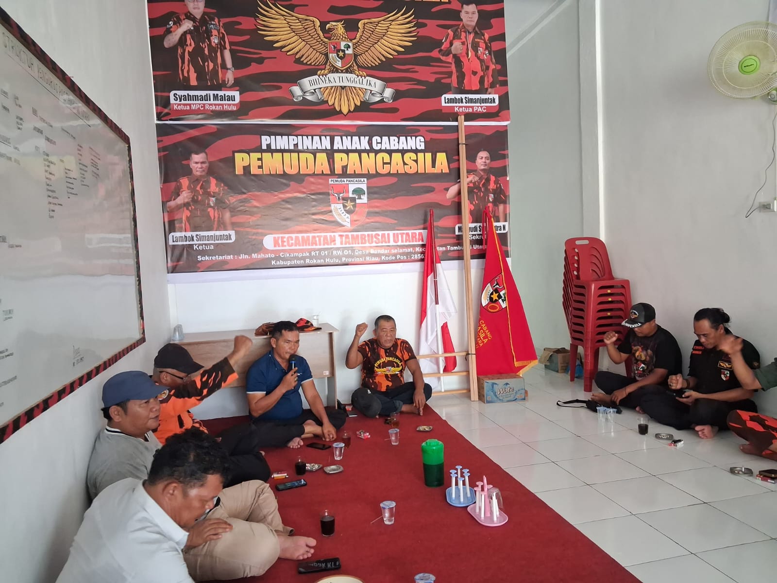 TKN94,Mahato .PAC Pemuda Pancasila Tambusai Utara adakan kegiatan rapat pembentukan panitia pelantikan yang akan di gelar : Senin ( 20/4/2026 ) di kantor sekretariat PAC PP tambusai utara jalan lintas mahato km 24 – Jalan Simpang Badak , pada jumat ( 3/4/2026 ) pukul 15.00 wib, bertempat di kantor sekretariat PAC Pemuda Pancasila Tambusai Utara Mahato KM 24 Bandar Selamat Tambusai Utara Rokan Hulu Riau.