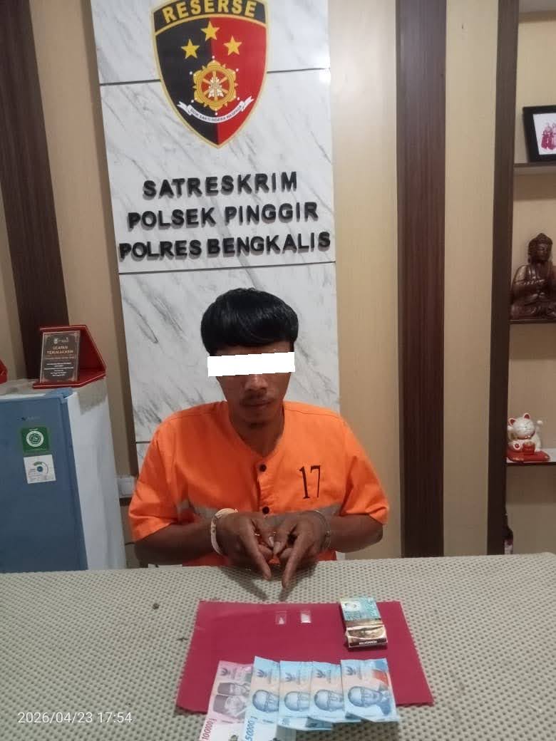 Targetkasusnew com -BENGKALIS Jajaran Polsek Pinggir kembali berhasil mengungkap kasus tindak pidana narkotika jenis sabu di wilayah Kelurahan Titian Antui, Kecamatan Pinggir, Kabupaten Bengkalis, pada Kamis (23/4/2026) sore.