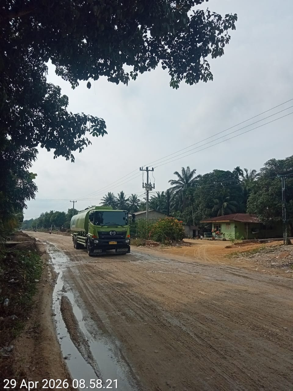 TKN.com,Mahato . PT APS Mahato pada saat musim kemarau rutin adakan penyiraman jalan poros , antisipasi debu jalanan akibat banyak nya kendaraan yang melintasi jalan Mahato yang akan menuju Sumut dan Rohil , kondisi jalan poros desa Mahato saat ini keadaannya masih jalan tanah , musim penghujan becek sekali – pada musim kemarau banyak sekali debu , terpantau awak media sedang adakan penyiraman jalan pada Rabu ( 29 / 4/2026 ) mulai pukul 09.00 wib – selesai ,Mahato km 22 tambusai Utara Rokan hulu Riau.