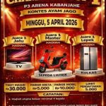 Berhadiah Sepeda Listrik hingga Kulkas! Dugaan Judi Sabung Ayam Skala Besar Siap Digelar di KabanjaheBERITA UTAMA|27 Maret 2026oleh TKN94.COMTKN94,Kabanjahe – Publik kembali dihebohkan dengan beredarnya sebuah poster yang mempromosikan acara